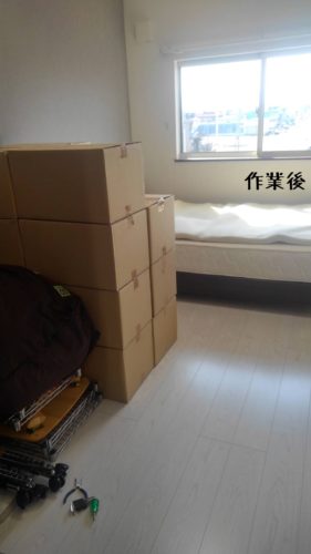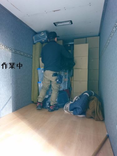 エレベーター無し3階から新築エレベーター無し3階までの単身引越しでしたが、引越し荷物は3トン程で移動時間も含め所要時間はスタッフ4名で5時間程の作業となりました。