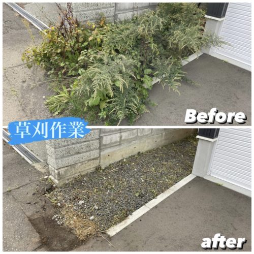 札幌市東区一軒家の草刈作業です。