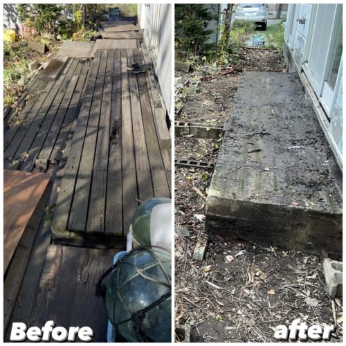 屋外にある不用品、車庫や物置の中、建物をぐるっと囲むように造ったウッドデッキも解体して回収となりました。
