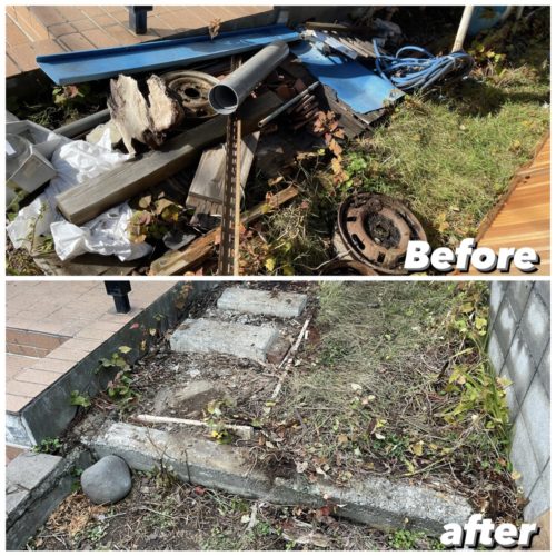 札幌市厚別区一軒家の屋外不用品回収作業です。