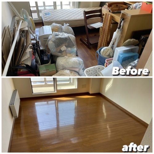 引越し運搬後に残りのゴミを搬出、清掃して作業完了、引越し量は約2㌧程・不要品搬出量は約4㌧程となりました。