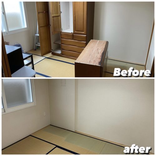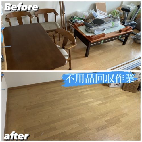要らなくなった家具を搬出、清掃して作業完了、不要品搬出量は約3トン程となりました。