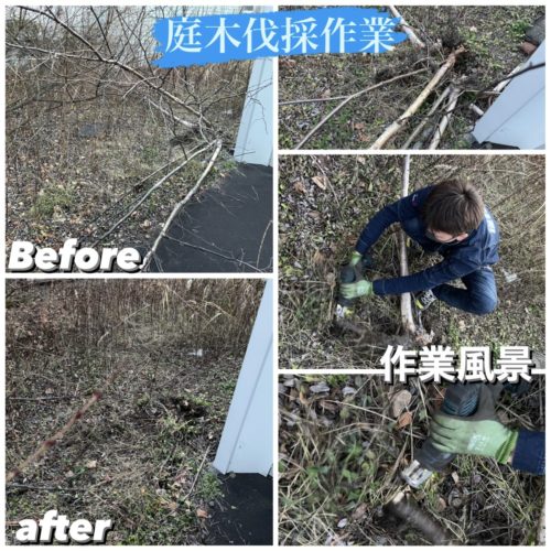 札幌市厚別区一軒家庭木伐採作業