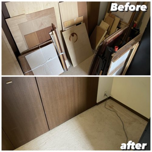 不用品を搬出、清掃して作業完了、不要品搬出量は2㌧程となりました。