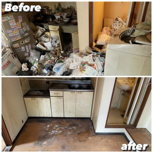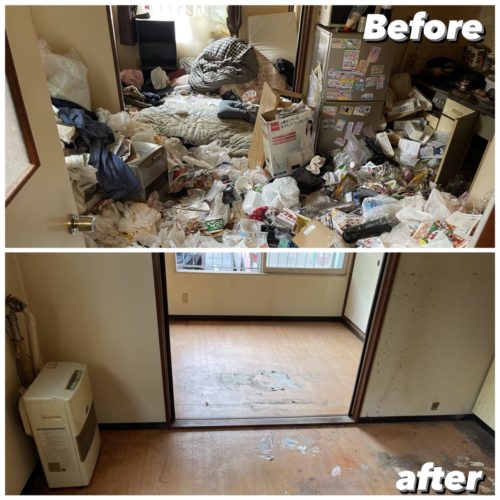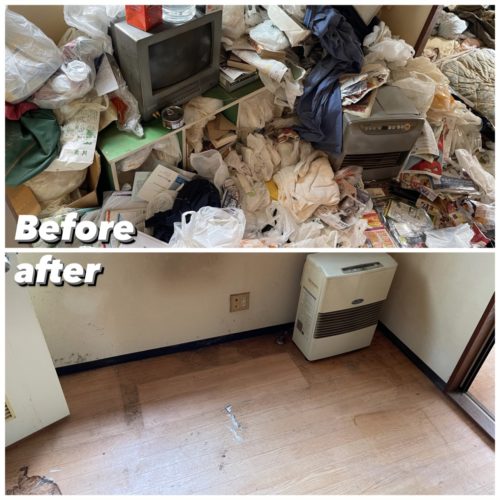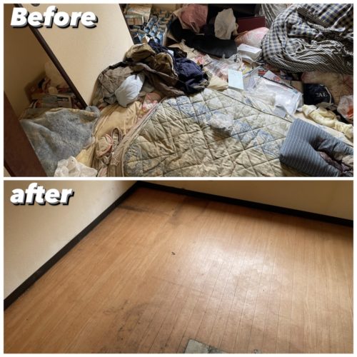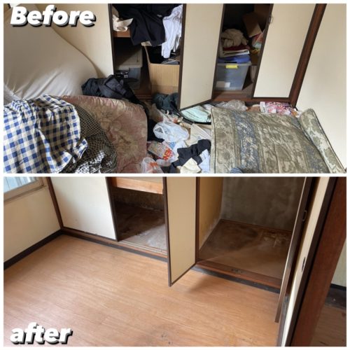 遺品の仕分けをしながら不要品を搬出、清掃して作業完了、搬出量は約2㌧程となりました。