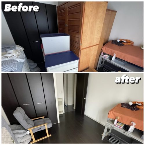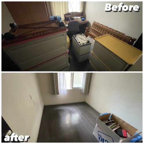 引越し後の不用品を搬出、清掃して作業完了、不要品搬出量は4㌧程となりました。