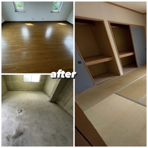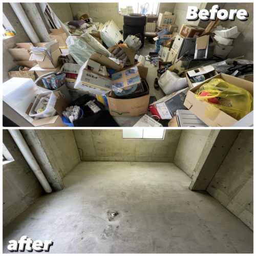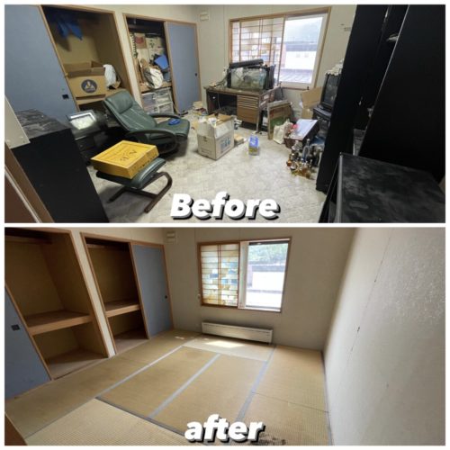 引越し後の不用品を搬出、清掃して作業完了、不要品搬出量は4㌧程となりました。