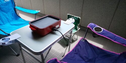 お部屋からバルコニーへ移動出来るワゴンに雑誌、調理器具を置いて設置すると、随分と使い勝手が良くなり、充実した余暇を楽しめる状態になりました。