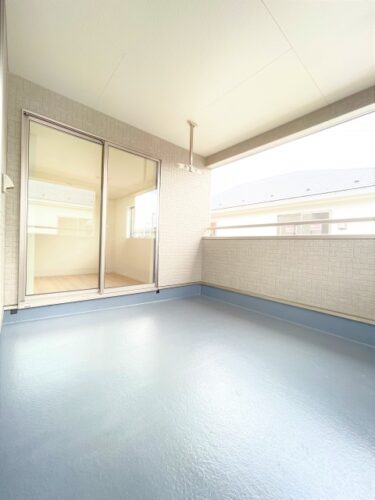 また、外側は高さ1.2mのコンクリート壁、お部屋との段差も無い設計になっておりますので、子供が走り回っても安心です。