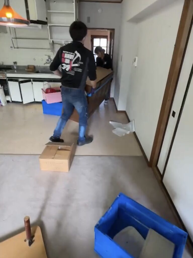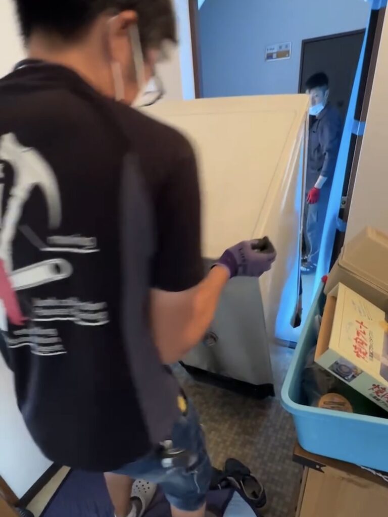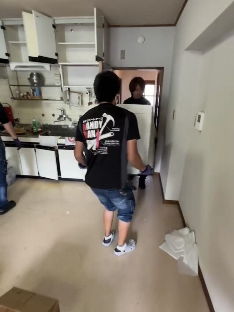 大物家具をどんどん運びだし、冷蔵庫は二人がかりで一気に外まで運んでいきます♪
