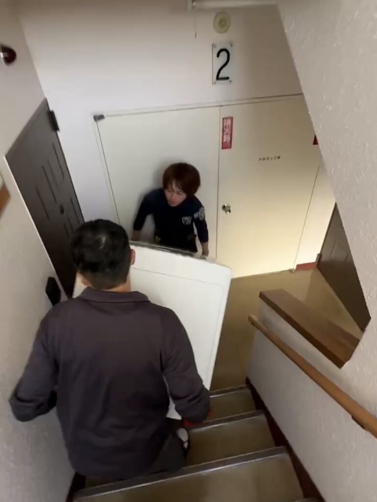 さすがに4階から2階くらいまで下りていくと、冷蔵庫の下を担当しているスタッフは重そうでした(^^;ゞ ガンバレー!(^^)!
