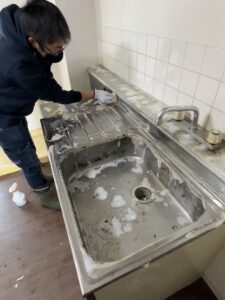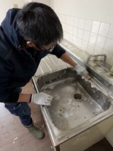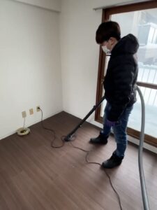 家具の搬出もだいたい落ち着いたら、次は清掃に入っていきます。