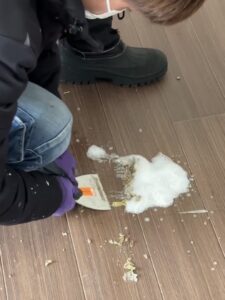床の素材との相性なのか、床のこびりつきがなかなか剝がれません(T_T)