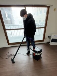 最後の仕上げには、隅々までお部屋に掃除機かけていきます。