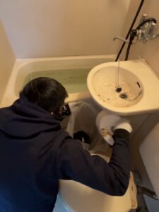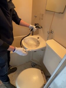 ゴミを回収しつつ、洗面台もゴシゴシお掃除をしてきます。