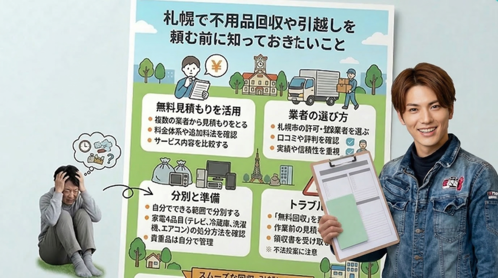 今回は、札幌で不用品回収や引越しの依頼を検討している個人やご家庭、単身者やファミリー向けに書かれています。